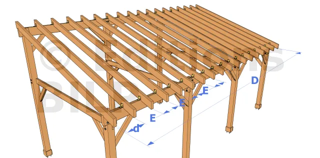Calculons l’entraxe D lors de la pose des premiers chevrons situés aux extrémités.