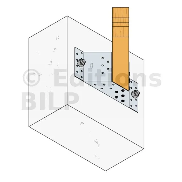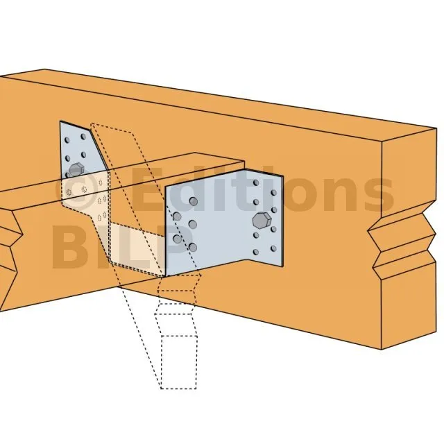 - Porteur : Les étriers à angle 45° peuvent être fixés sur une variété de matériaux porteurs, incluant le bois massif, le bois composite, le lamellé-collé, le béton et même l’acier. Cette diversité de supports porteurs permet une utilisation dans des contextes variés, répondant aux exigences structurelles des projets de construction modernes.