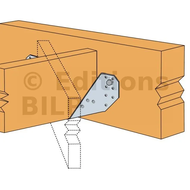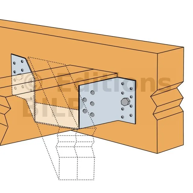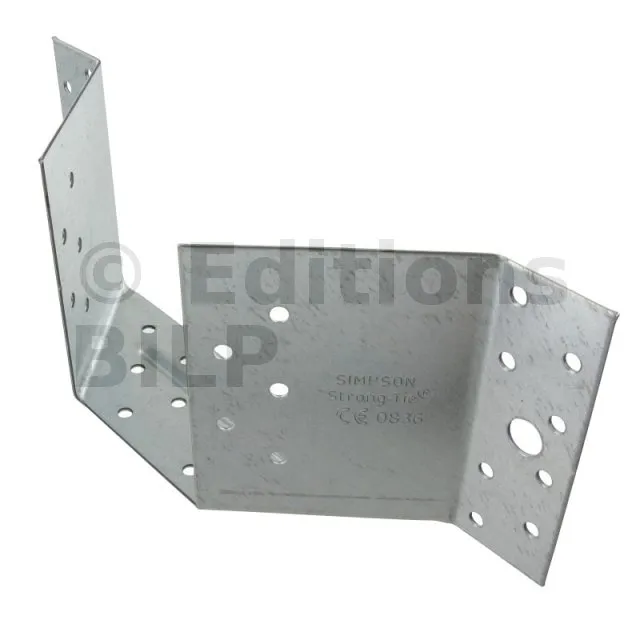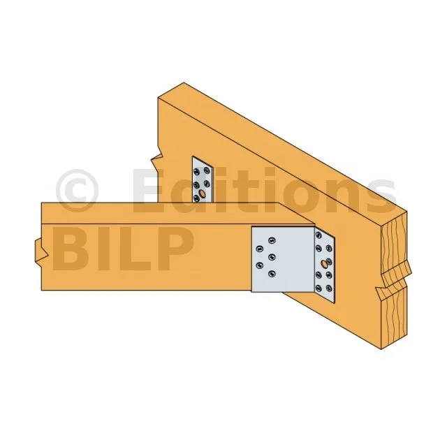 - Fixation de fermettes : Les étriers à angle 45° sont particulièrement adaptés pour la fixation de fermettes, assurant une connexion stable et fiable entre les différents éléments de la charpente.