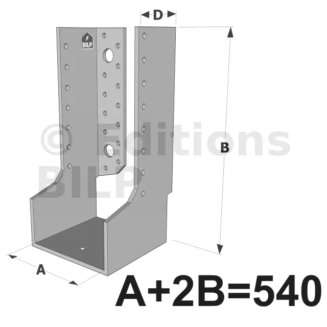 Grands sabots à ailes intérieures, gamme GLI ECONOMIQUE (développé 540mm, épaisseur 4mm, profondeur 90mm) - Réf. GLI540/4X