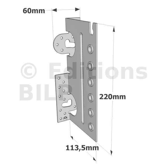 Porté : - Broches Inox Ø10 mm (longueur à préciser suivant épaisseur du bois).