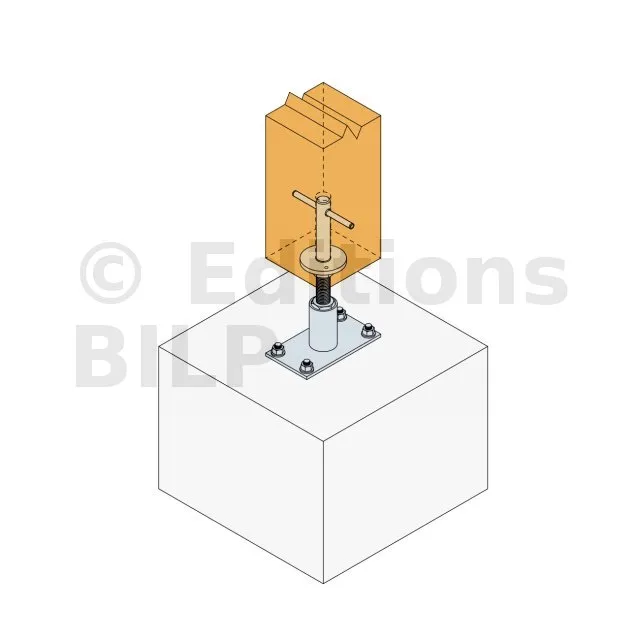 - Connexion bois sur support rigideSur poteau : 1Ø10x80 (broches STD) ; sur béton : 4Ø12 (goujons WA ; tige filetée)