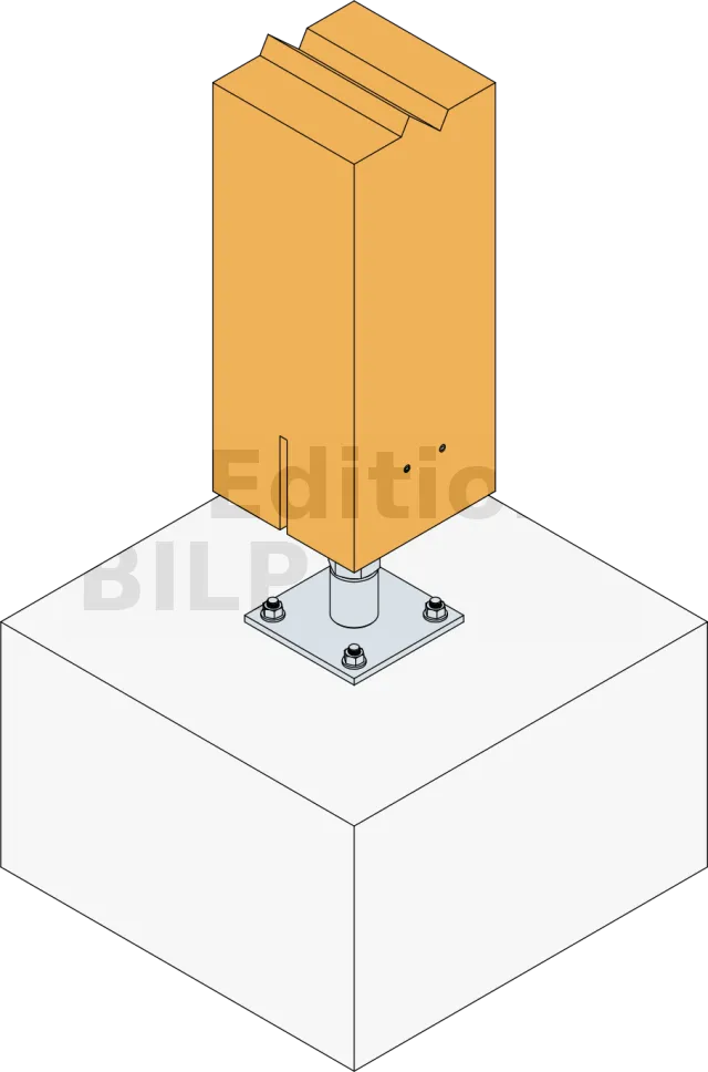Le pied de poteau forte charge PIBA110/160 permet une forte reprise de charge en compression ainsi qu’une reprise des efforts de soulèvement grâce à son âme verticale.