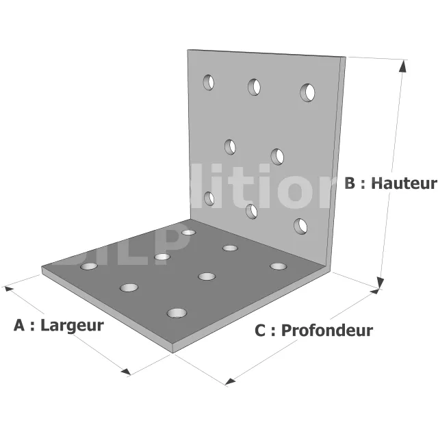 | Références | Dimensions [mm] | Perçages Aile A | Perçages Aile B | |||||||