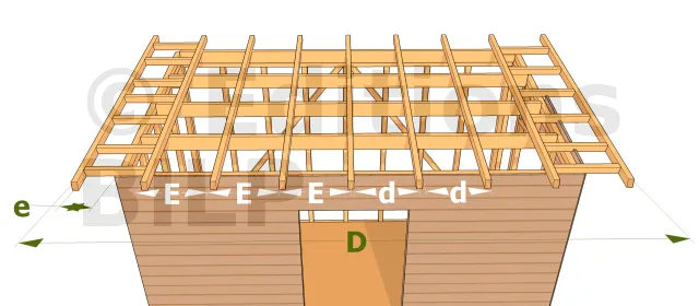 Calculons l’entraxe D lors de la pose des premiers chevrons aux extrémités.