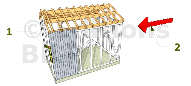 Commencer l’installation par le coté opposé au vent dominant (Bord gauche ou droit). Prenez bien votre temps pour installer correctement ce premier panneau. Assurez-vous qu’il soit bien d’aplomb pour maintenir l’alignement des prochains panneaux.