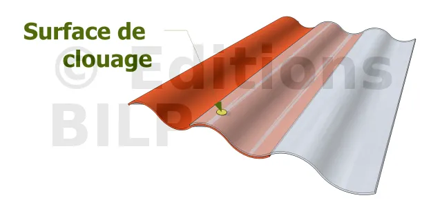 Installez le second panneau à coté du premier. Superposez-les sur la dernière partie ondulée. Fixer temporairement d’abord tous les panneaux, et après alignement, clouez définitivement au niveau des ondulations.