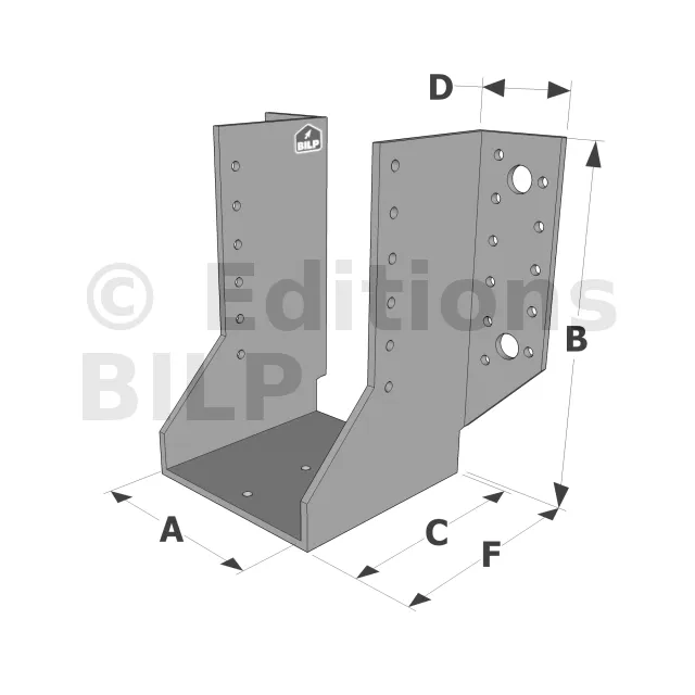 Les sabots GSE en acier galvanisé offrent une flexibilité grâce à des largeurs au choix selon les plages indiquées. Cette caractéristique permet de s’adapter parfaitement aux dimensions spécifiques des éléments de construction, garantissant une compatibilité optimale et une fixation stable.