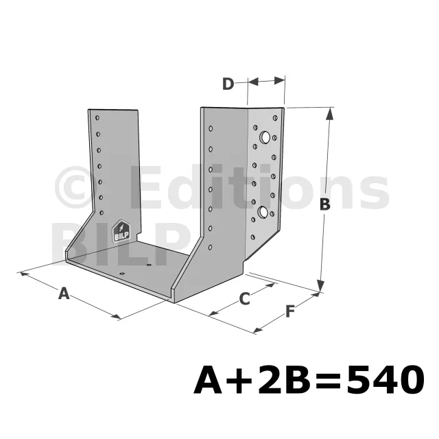 Grands sabots à ailes extérieures, gamme GSE CLASSIQUE (épaisseur 4mm, profondeur 110mm) - Réf. GSE540/4X-AL