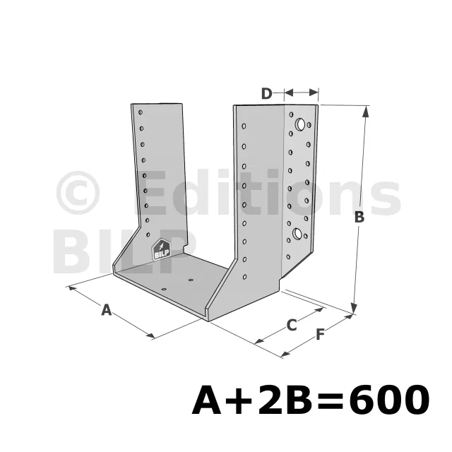 Grands sabots à ailes extérieures, gamme GSE CLASSIQUE (épaisseur 4mm, profondeur 110mm) - Réf. GSE600/4X-AL