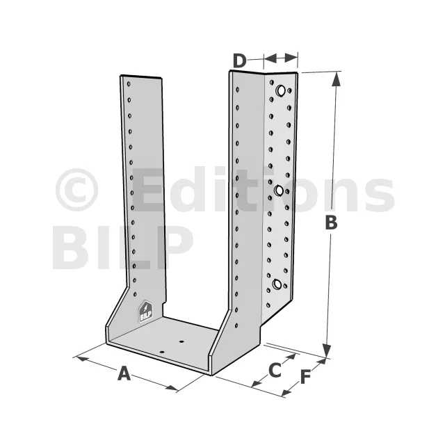Les sabots GSE en acier galvanisé offrent une flexibilité grâce à des largeurs au choix selon les plages indiquées. Cette caractéristique permet de s’adapter parfaitement aux dimensions spécifiques des éléments de construction, garantissant une compatibilité optimale et une fixation stable.