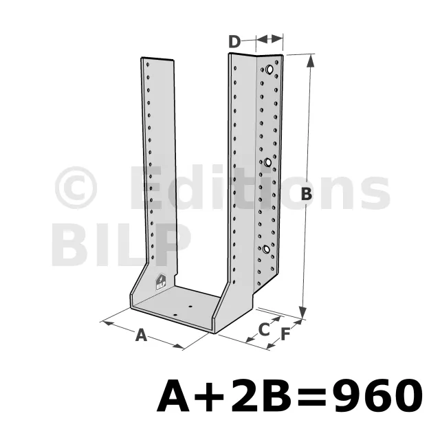 Grands sabots à ailes extérieures, gamme GSE CLASSIQUE (épaisseur 4mm, profondeur 110mm) - Réf. GSE960/4X-AL