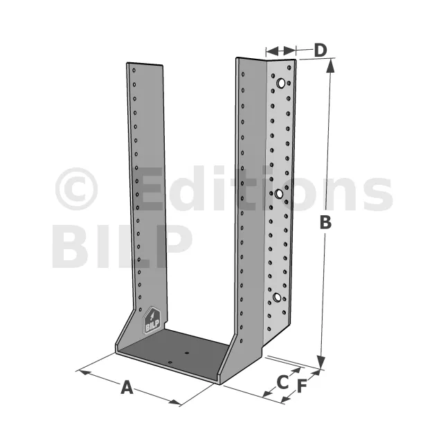 Les sabots GSE en acier galvanisé offrent une flexibilité grâce à des largeurs au choix selon les plages indiquées. Cette caractéristique permet de s’adapter parfaitement aux dimensions spécifiques des éléments de construction, garantissant une compatibilité optimale et une fixation stable.