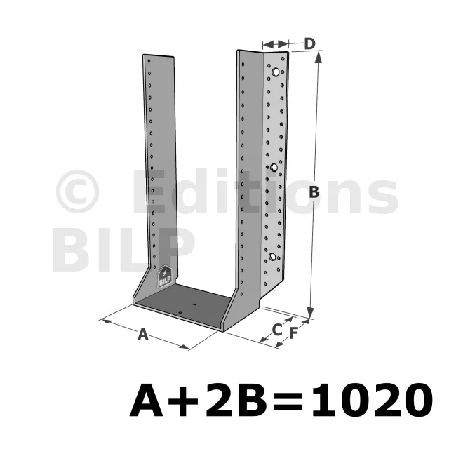 Grands sabots à ailes extérieures, gamme GSE CLASSIQUE (épaisseur 4mm, profondeur 110mm) - Réf. GSE1020/4X-AL