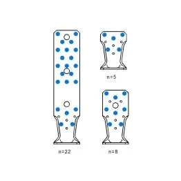 Plusieurs hypothèses sont à considérer pour les valeurs données dans le tableau ci-dessus (voir ETA-07/0285 p 135 - Annexe D61 - Characteristic Capacities for nailing pattern 22 - tableaux D61-11 à15 pour plus de détails et autres valeurs) :