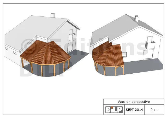Les vues en perspective permettent de se situer rapidement par rapport à la structure et de se repérer pour toute la suite des plans. On utilise généralement les 4 points cardinaux pour les nommer, à savoir le NORD, le SUD, l’EST, et l’OUEST. Il est possible d’insérer ces vues avec une image réelle sur terrain.