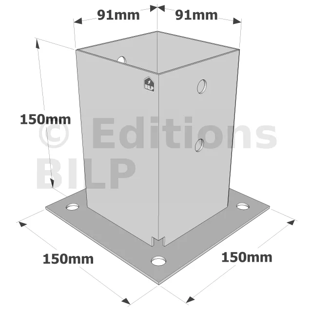 Pied de poteau carré sur platine "prêt-à-fixer"