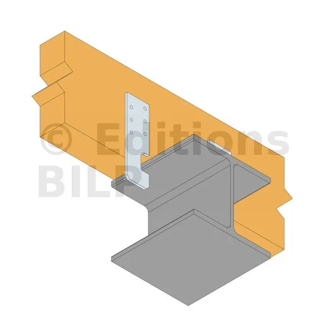 L‘ancrage IPN permet la fixation de solive bois sur poutre en I métallique de type IPN. Cette fixation est assurée par encoches.