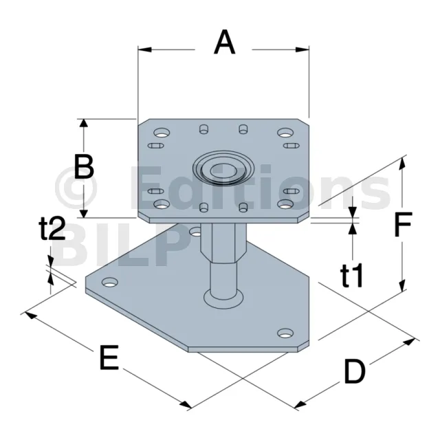 Les pieds de poteau type PBLR ont été conçus afin de répondre aux exigences réglementaires relatives au respect des distances des chevilles mécaniques en bord de dalle béton. Ils peuvent être utilisés indifféremment en angle, au bord ou au centre de la dalle.