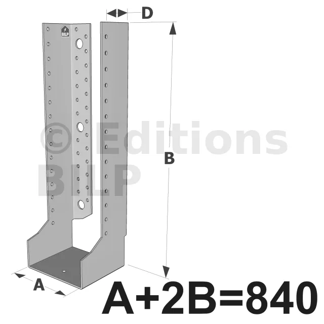 Grands sabots à ailes intérieures, gamme GLI ECONOMIQUE (développé 840mm, épaisseur 2.5mm, profondeur 90mm) - Réf. GLI840/2.5X-AL