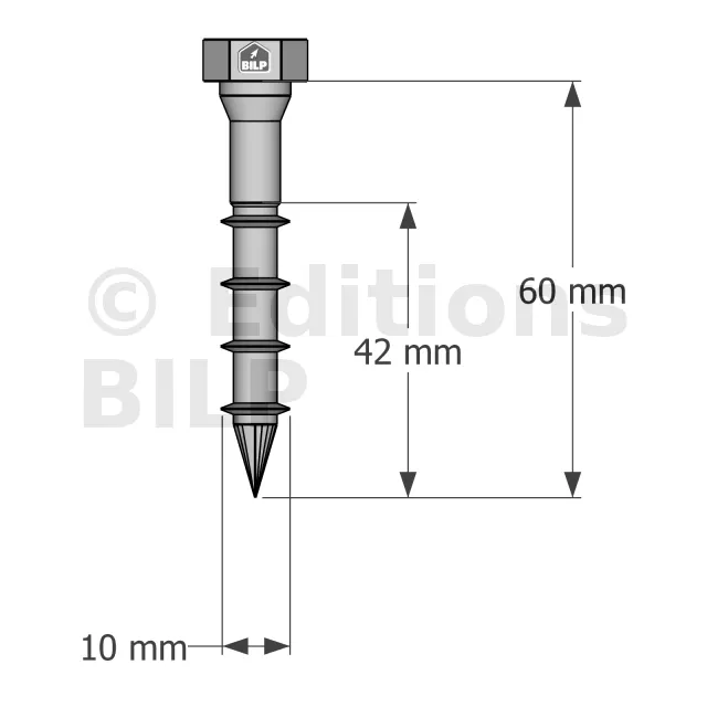 - Marquage de la tête incluant la longueur en mm facilitant le contrôle,