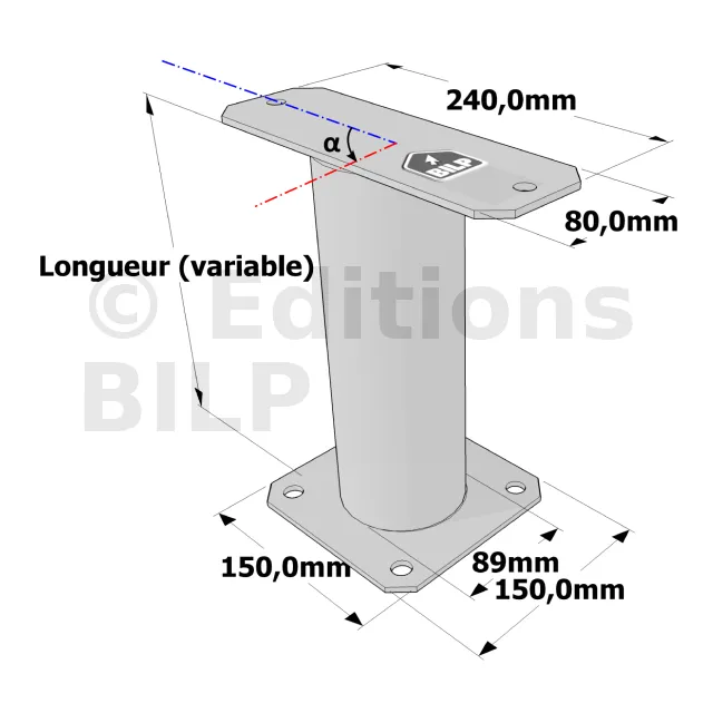 Poteau structurel OSP - D89mm - Platine haute rectangulaire 80x240mm - Embase 150x150mm