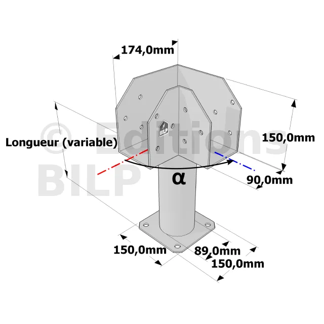 Poteau structurel OSP - D89mm - Platine haute en L 90x174x150mm - Embase 150x150mm