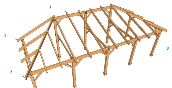 Les chevrons supportent toujours les charges, et les transmettent aux pannes en pente. Ces chevrons travaillent en flexion mais avec un risque de déviation et de flambement sous les forces suivant la pente. Il faut interposer des entretoises si la charge est trop grande et les portées importantes. Cela dépend aussi du type de couverture.