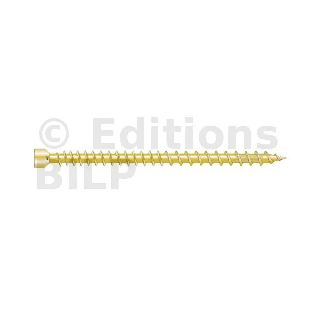 - Tête cylindrique : diminue l’éclatement du bois et rend la fixation invisible dans le bois,