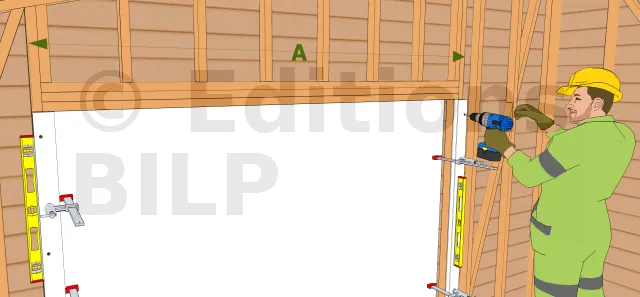 - Poser les coulisses sur les bords de l’ouverture de votre garage en vous assurant que la distance entre les dos des coulisses A est égale à la longueur du caisson de la porte à enroulement