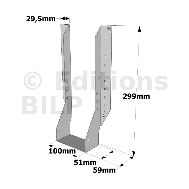 Les étriers à brides latérales IUSE garantissent une mise en œuvre facilitée grâce aux brides supérieures, tout en assurant un maintien de la membrure basse par forte adhérence. Le clouage s’effectue sur les brides latérales après un prépositionnement possible avec le "speed-prong".