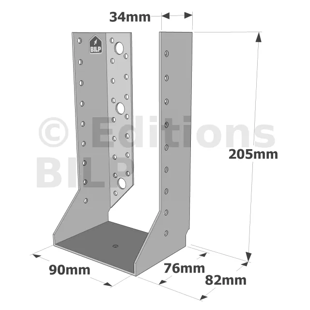 - Robustesse et discrétion : Grâce à leur conception en acier galvanisé, ces sabots sont robustes et résistent aux conditions climatiques difficiles. Les ailes intérieures permettent une intégration discrète, préservant l’esthétique de la structure.