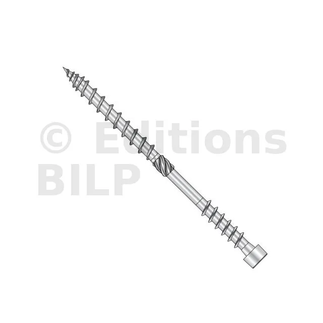 - Tête cylindrique : diminue l’éclatement du bois et rend la fixation invisible dans le bois,