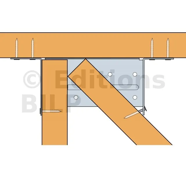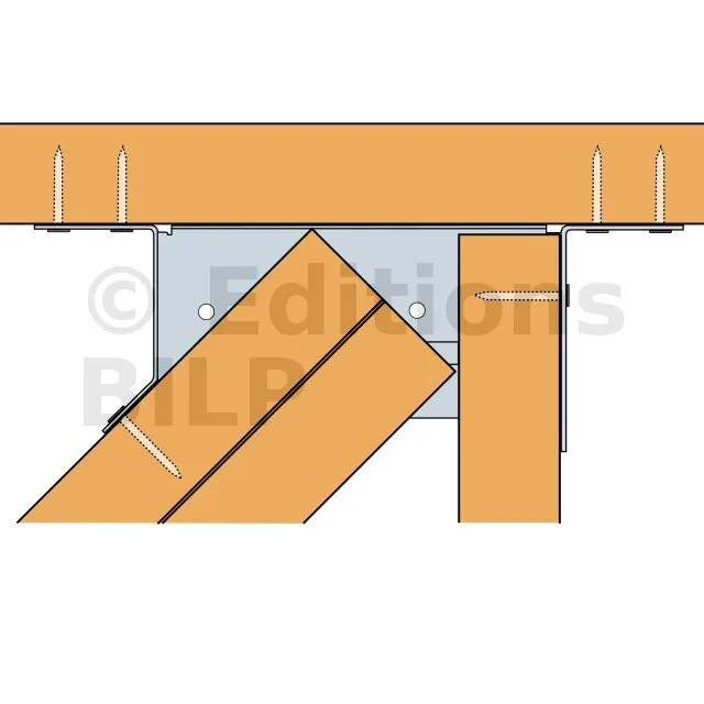 Les étriers pour croupe sont utilisés dans la fermette de section 38mm. Ils permettent la réalisation d‘une croupe en assemblant les demi-fermes d‘arêtier et d‘empannon. Les modèles différent suivant le type de mise en œuvre.
