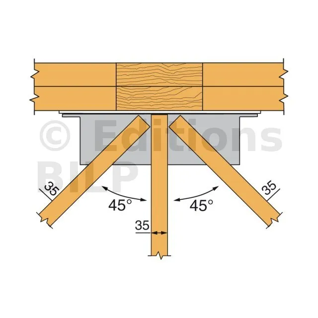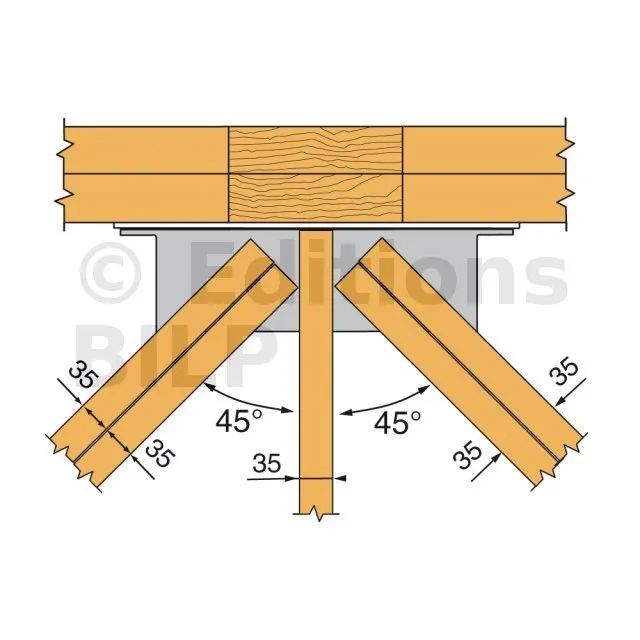 Assemblages trois éléments : deux arêtiers doubles et un empannon OU deux arêtiers simples et un empannon.