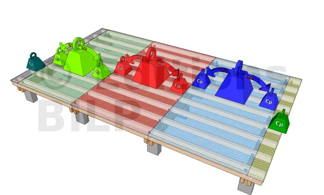 Pour l’obtenir, il faut connaître la surface d’influence de la poutre c’est à dire la surface de plancher reprise par la poutre. Comme un plancher en bois n’est porteur que dans un seul sens, une poutre ne supporte que la moitié de l’espacement de chaque côté.