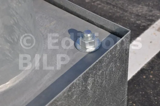 Si vous prévoyez de tracter la cabane pour la déplacer, il est important de fixer les solives aux patins très solidement. On utilise des équerres de bonnes dimensions en épaisseur 2,5 mm.