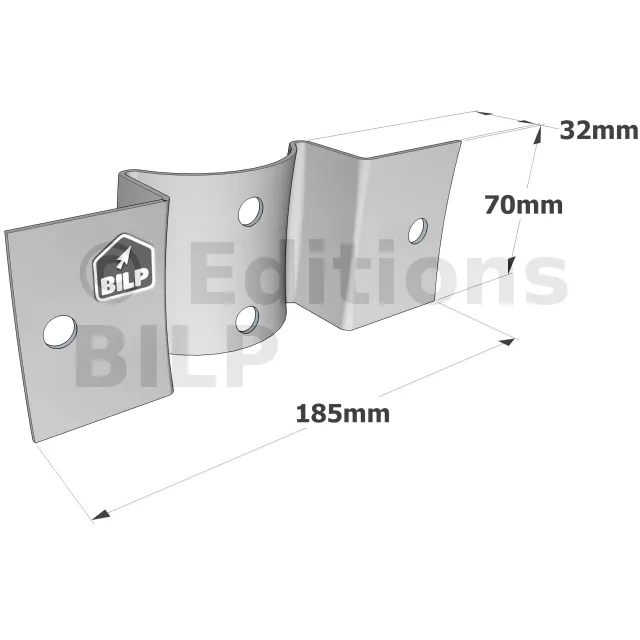 Equerre pour bois ronds - à fixer sur des bois ronds - 185x70x32mm - Réf. RFC80/120_30