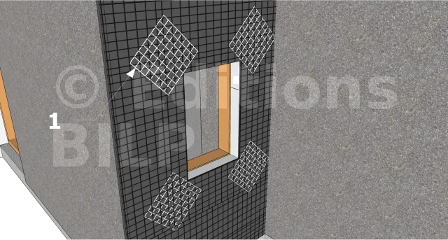 - Pose des fibres de verre dans cette sous-couche : le recouvrement des lés est de 10 cm au minimum et les armatures seront retournées de 20 cm sur les arêtes des murs et sur toutes les ouvertures.