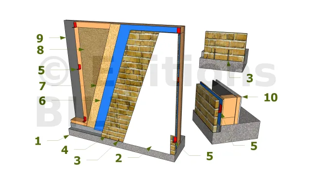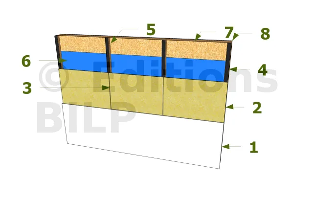 - 1 : Dalle en béton jusqu’au raz de la doublure en maçonnerie
