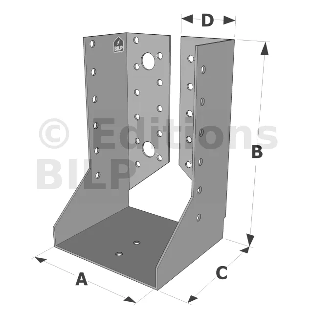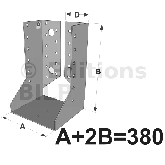 Attention, pour les sabots SAIX à ailes intérieures de largeurs inférieures à 80 mm, les ailes sont recoupées sur la hauteur dans l’axe des perçages de boulons. La fixation sur le porteur est donc uniquement possible par pointes ou vis dans la ligne verticale de perçages Ø5 proche du pli.
