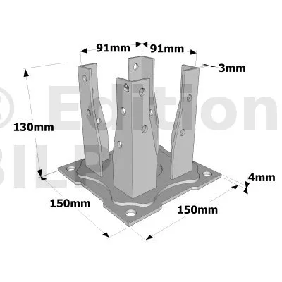 Pied de poteau carré de jardin à boulonner - Réf. AG527P