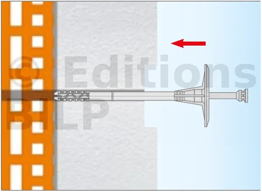 - Enfoncer le corps de la fixation de manière à ce que la rondelle de fixation soit orientée vers le matériau d’isolation thermique.