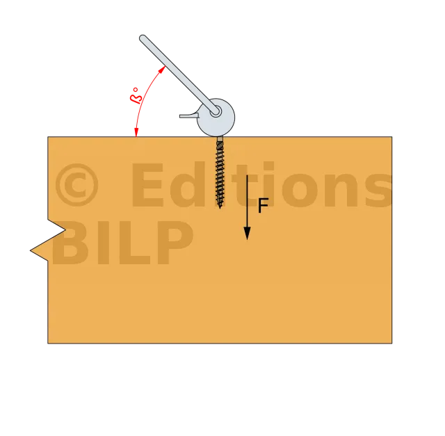 - Vis SSH installée avec un fraisage, perpendiculairement à la fibre du bois, et sollicitée avec un angle.