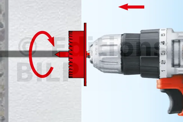 Méthode de montage - encastré avec disque de polystyrène (Fraise en plastique pour le polystyrène)