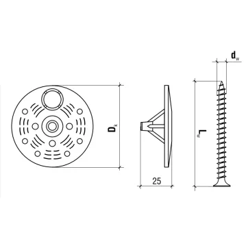 Rondelle isolante utilisée pour fixer le polystyrène EPS (polystyrène expansé) et la laine minérale sur des supports en bois et des substrats en tôles minces.