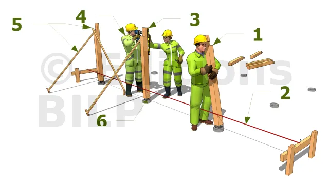 - 2 : aligner en affleurement le pilotis sur le cordeau, sans le toucher.