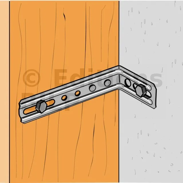 3. Si le support est en bois, l’équerre est aussi pointée ou vissée sur celui-ci,