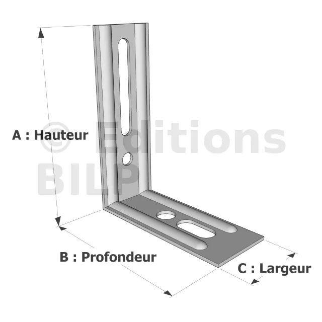 | Références | Dimensions [mm] | Perçages Aile A | Perçages Aile B | Valeurs Admissibles suivant DTU36.5 [daN] | |||||||