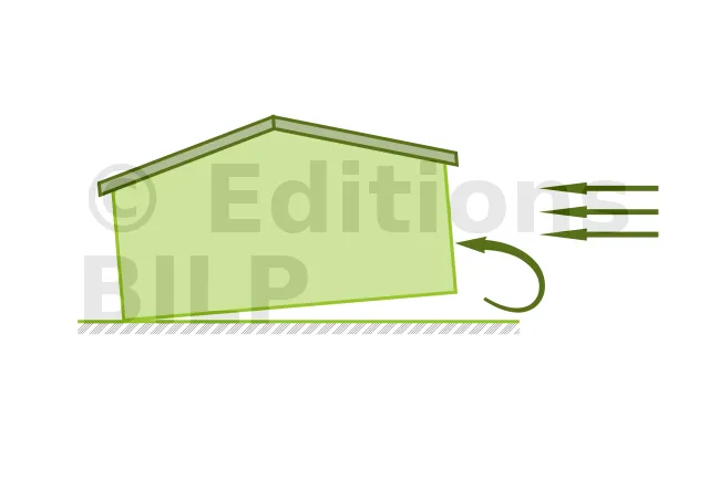 En effet, il est possible qu’un bâtiment soit renversé ou soit emporté par la force du vent. Le résultat des calculs vous indiquera s’il y a OUI ou NON un risque de renversement sur la longueur et/ou sur la largeur du bâtiment.